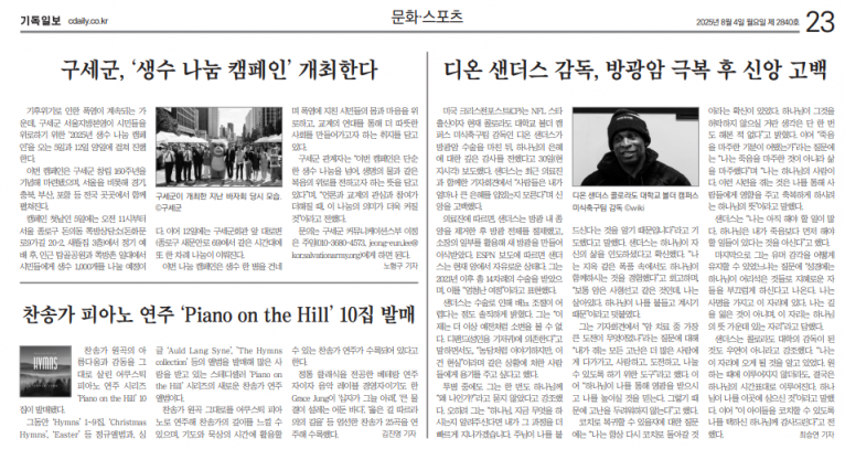 [기사] 찬송가 피아노 연주 ‘Piano on the Hill’ 10집 발매(기독일보)