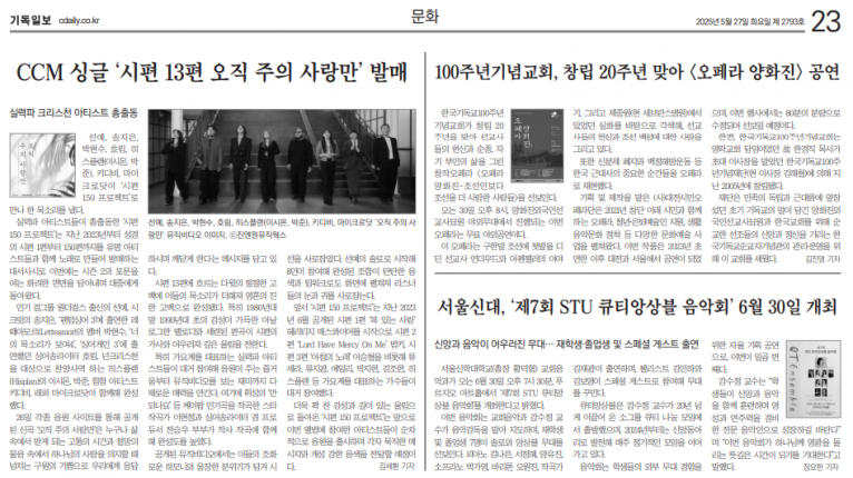 [기사] CCM 싱글 ‘시편 13편 오직 주의 사랑만’ 발매(기독일보)