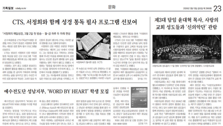 [기사] 예수전도단 성남지부, ‘WORD BY HEART’ 학생 모집(기독일보)
